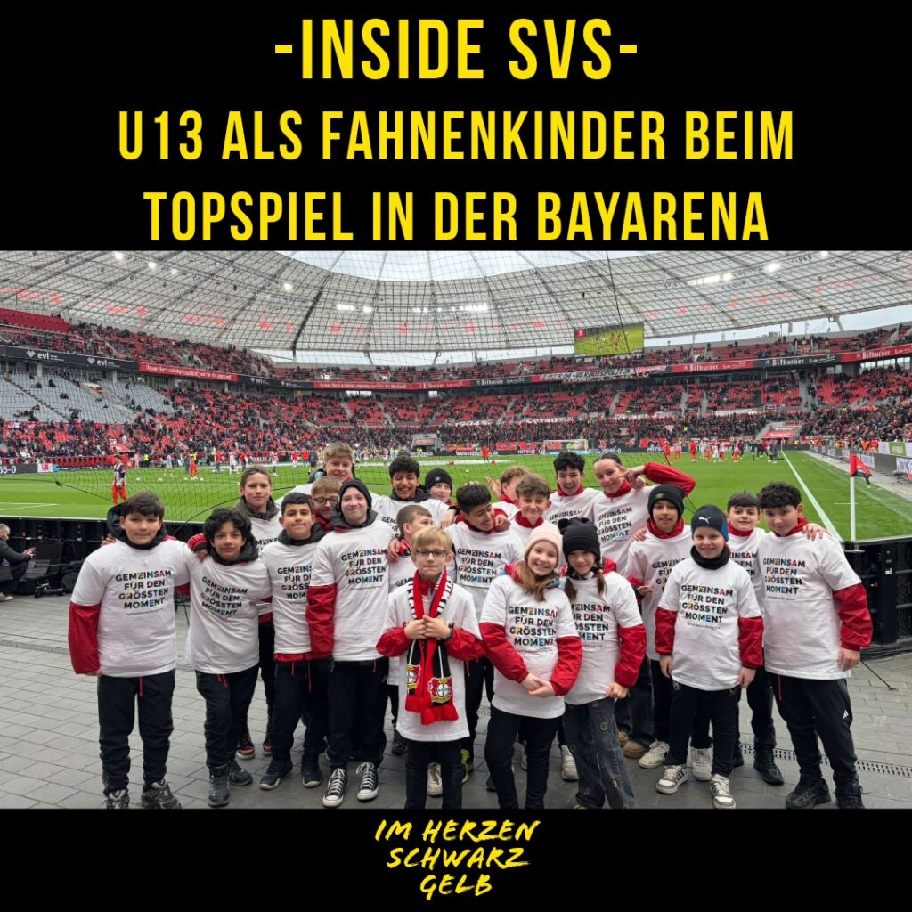 Unsere Mannschaft durfte am Samstag als Fahnenkinder beim Topspiel Bayer 04 Leverkusen gegen den FC Bayern München im Stadion dabei sein. Für die Jungs war
